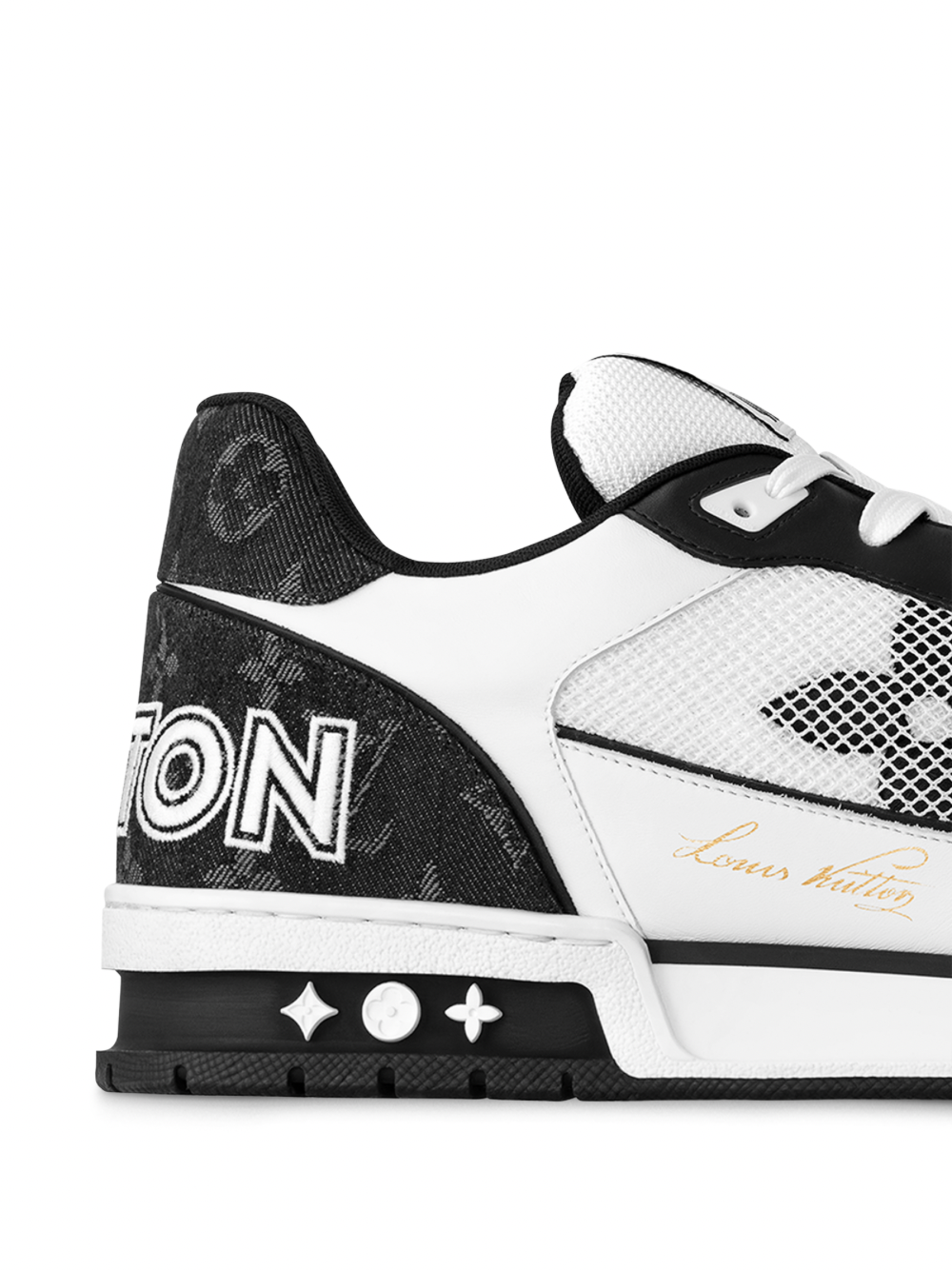 Diseñado para Louis Vuitton por Virgil Abloh e inspirado en los tenis clásicos de basquetbol vintage, el LV Trainer se ha convertido en un ícono dentro de la colección de calzado de la casa. Esta versión está confeccionada en denim Monogram y destaca por su correa de velcro adornada con las Flores Monogram en relieve.